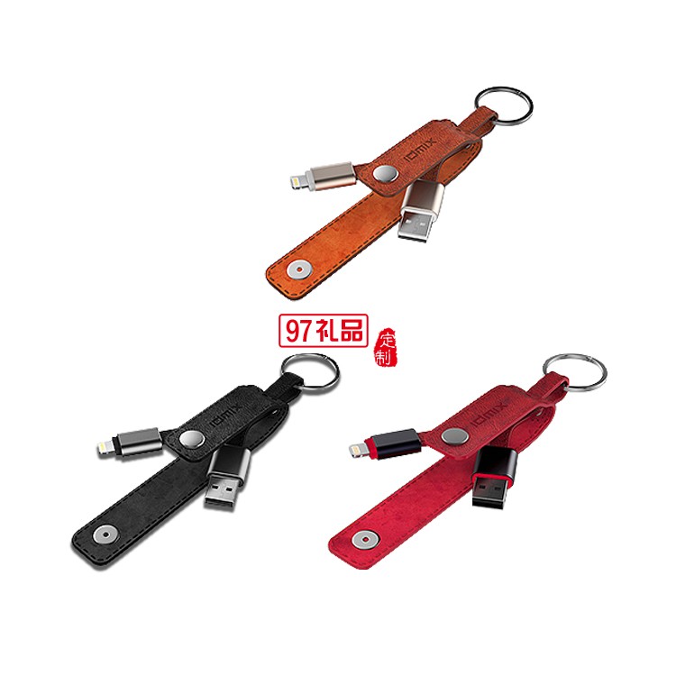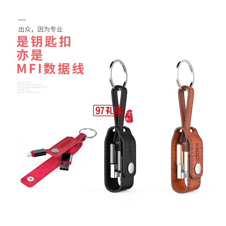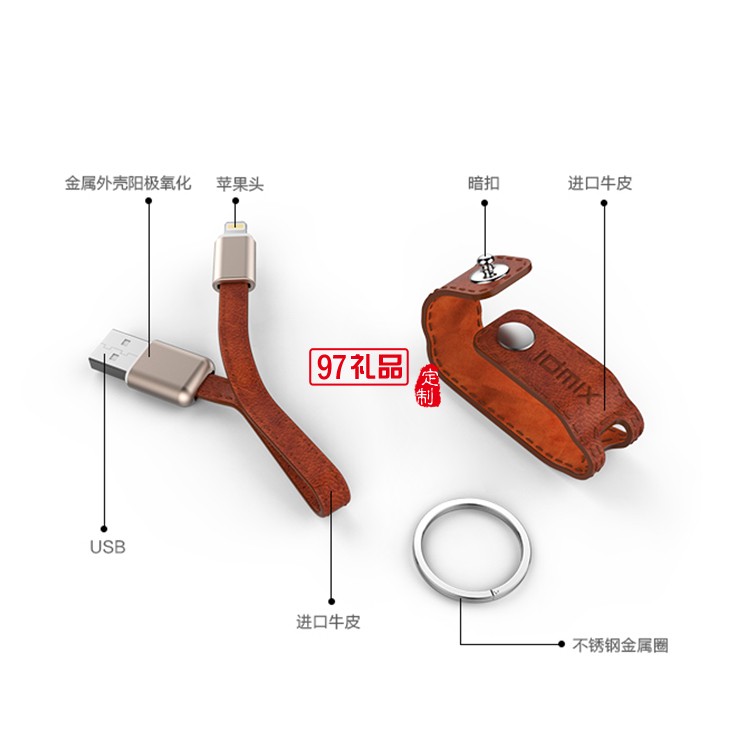 蘋果MFI真牛皮數(shù)據(jù)線 iPhone7/6s便攜充電線鑰匙扣短線