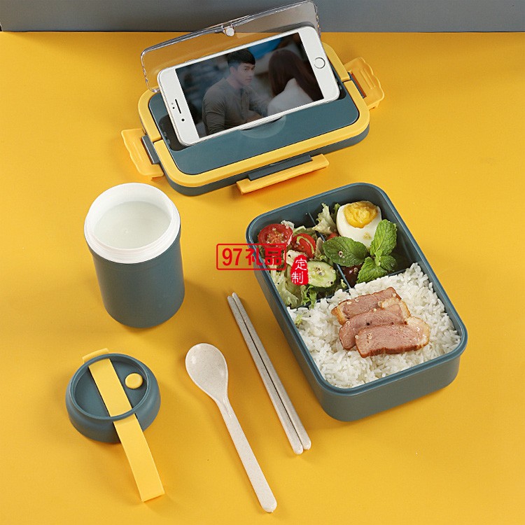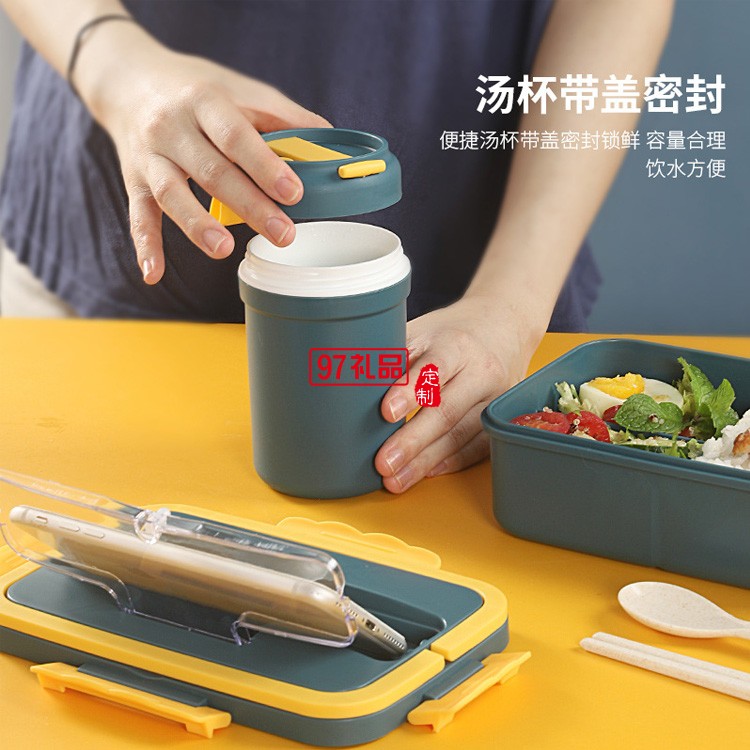 學生飯盒午餐盒小麥秸稈便當盒早餐杯套裝禮品可微波爐塑料保鮮盒