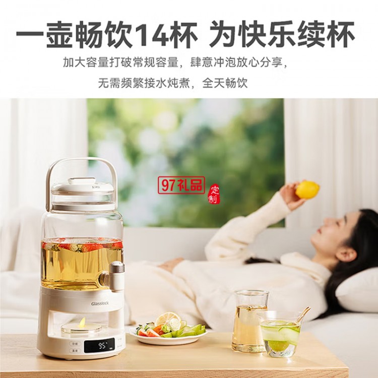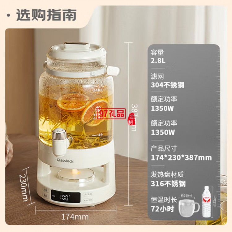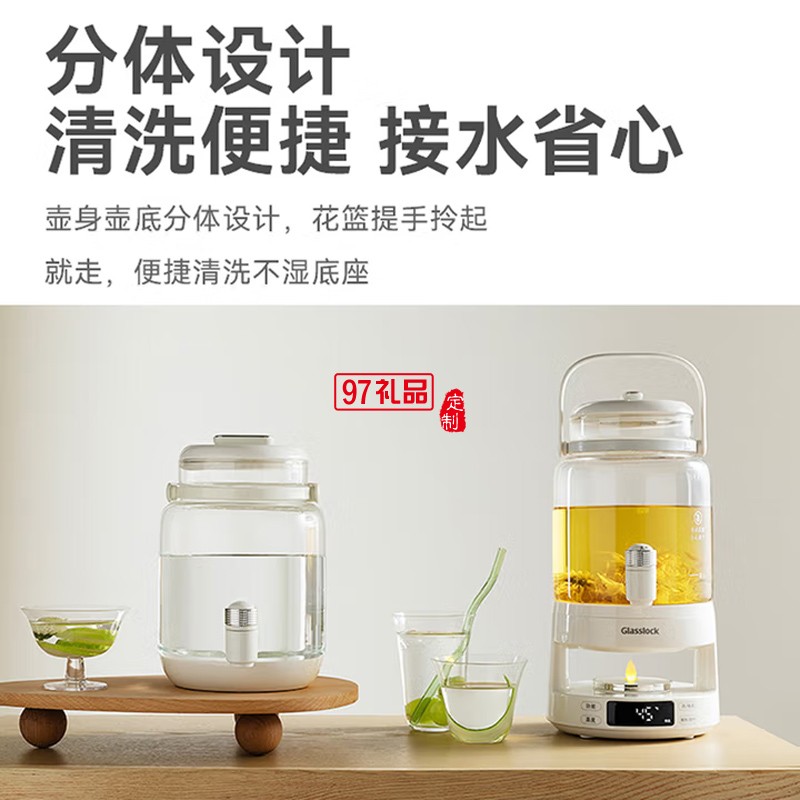 GLASSLOCK花茶電熱水瓶養(yǎng)生壺帶水龍頭恒溫玻璃煮果茶泡酒桶燒水壺