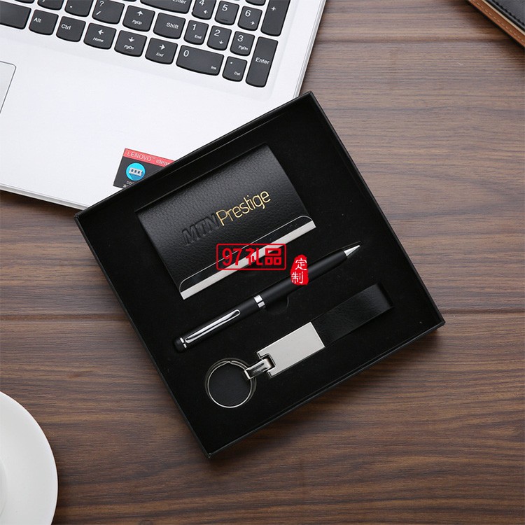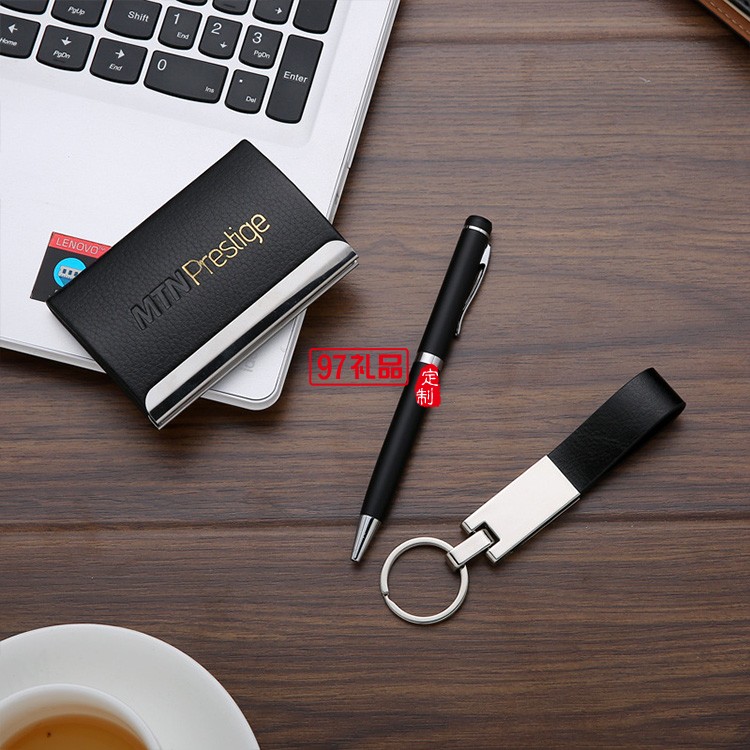 新款金屬簽字筆+名片盒+鑰匙扣辦公商務(wù)禮品套裝