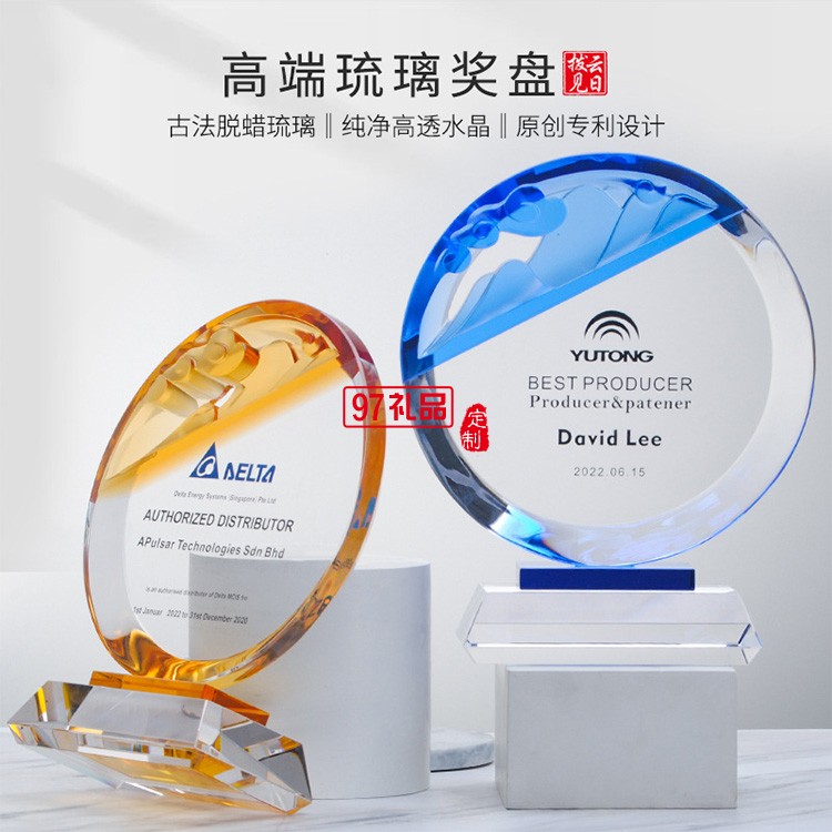 原創(chuàng)專利水晶琉璃紀(jì)念盤司周年慶紀(jì)念品定制