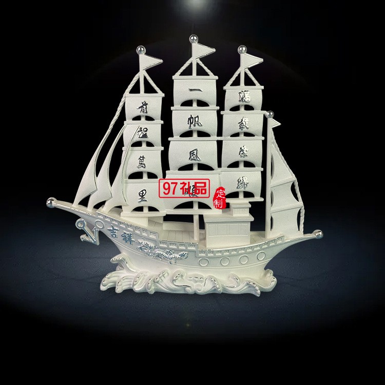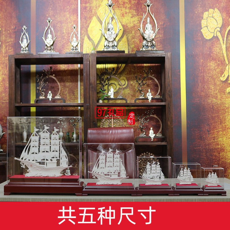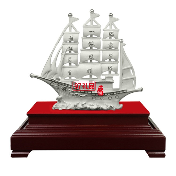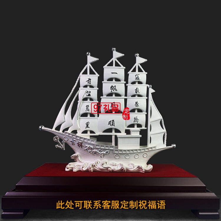 一帆風(fēng)順純銀模型刻字開業(yè)搬遷帆船擺件企業(yè)周年禮品定制