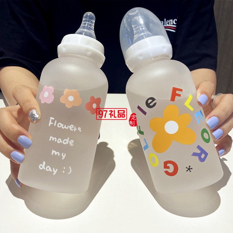 可愛(ài)奶嘴奶瓶水杯ins塑料網(wǎng)紅帶吸管杯子