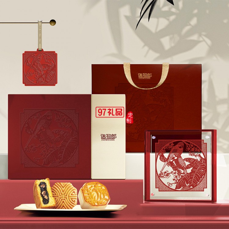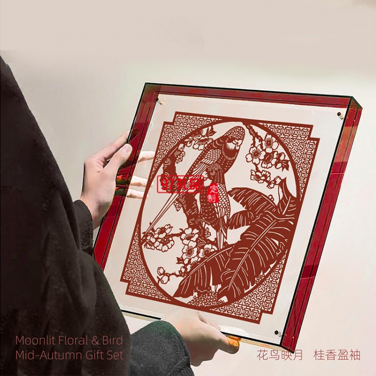 花鳥映月細(xì)紋刻紙中秋新款月餅禮盒裝企業(yè)團(tuán)購(gòu)定制logo商務(wù)伴手禮