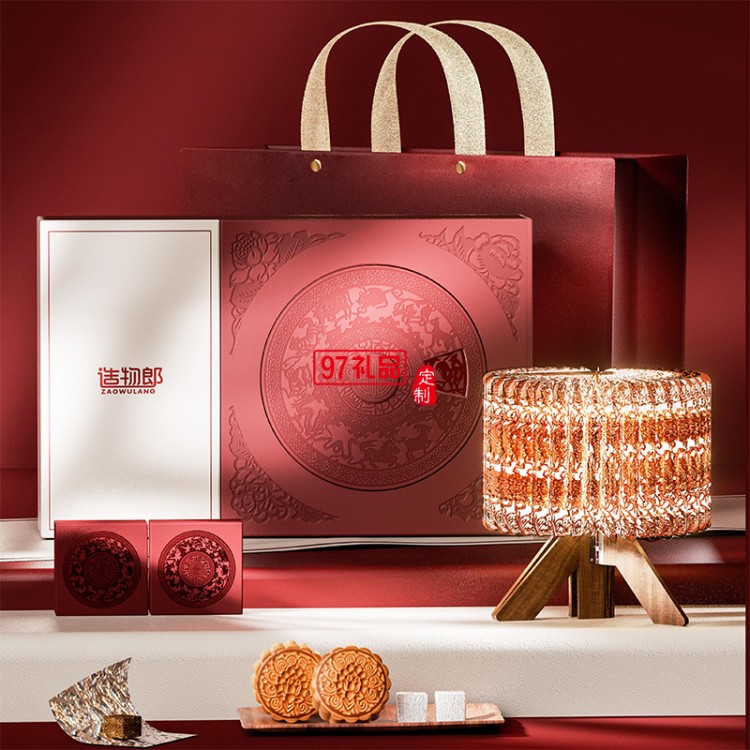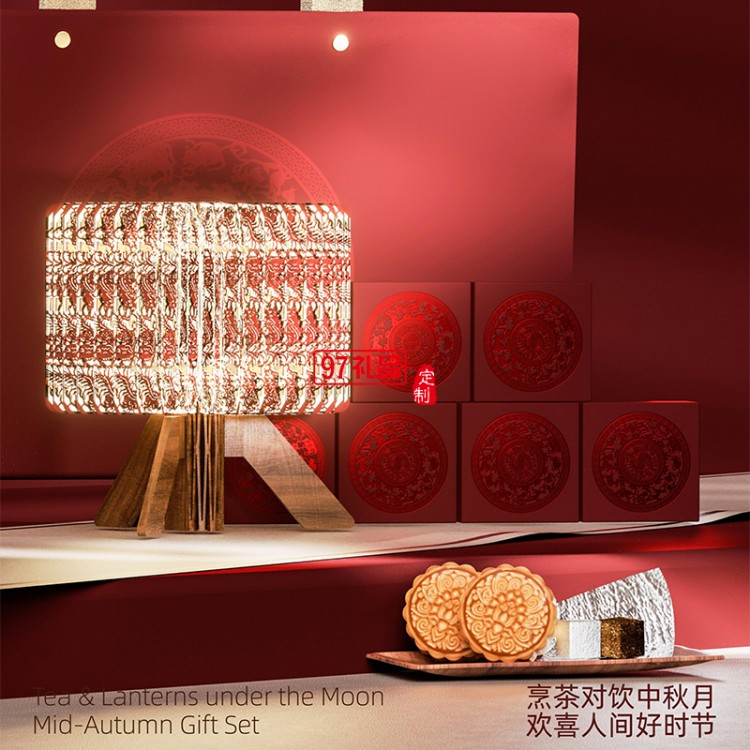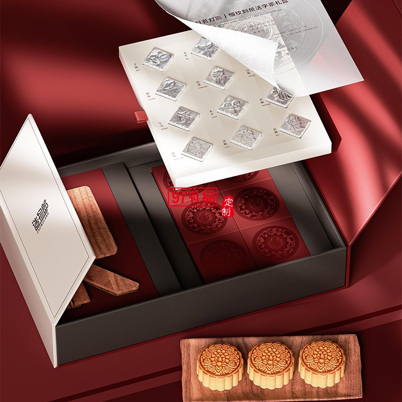 月茗燈影細(xì)紋刻紙活字茶中秋新款月餅禮盒裝定制商務(wù)伴手禮