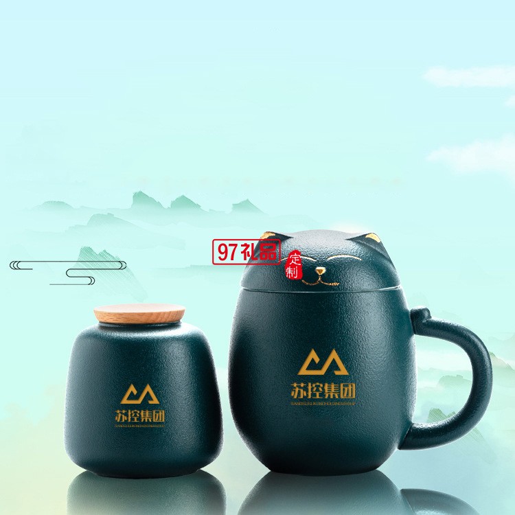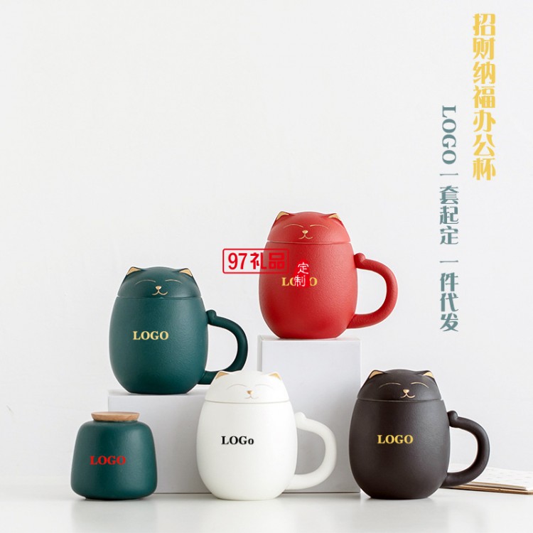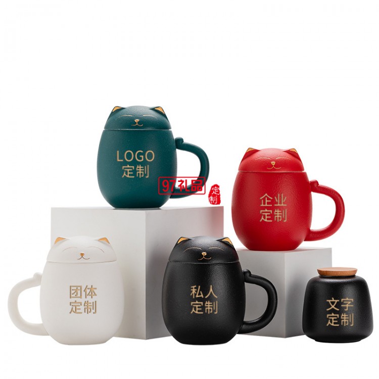 招財貓?zhí)沾神R克杯創(chuàng)意茶杯帶蓋辦公室泡茶杯子過濾杯卡通端午禮品