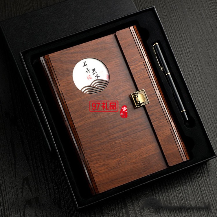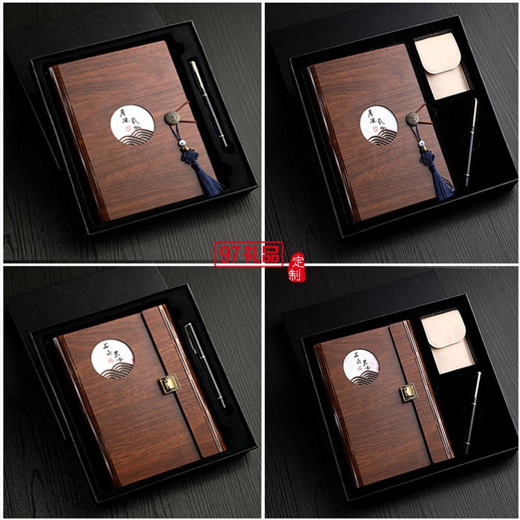 高檔記事本中國風(fēng)仿木質(zhì)創(chuàng)意活頁筆記本定制商務(wù)套裝本子