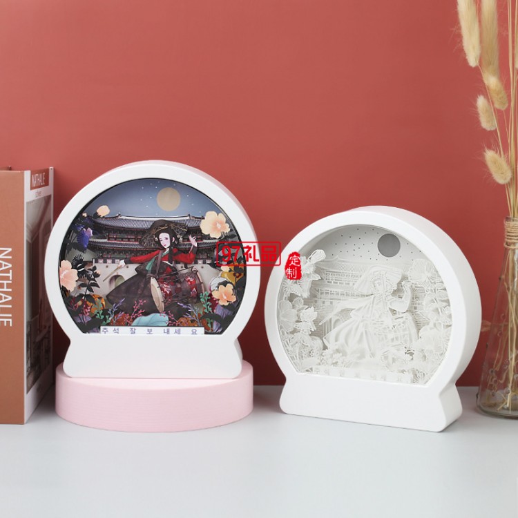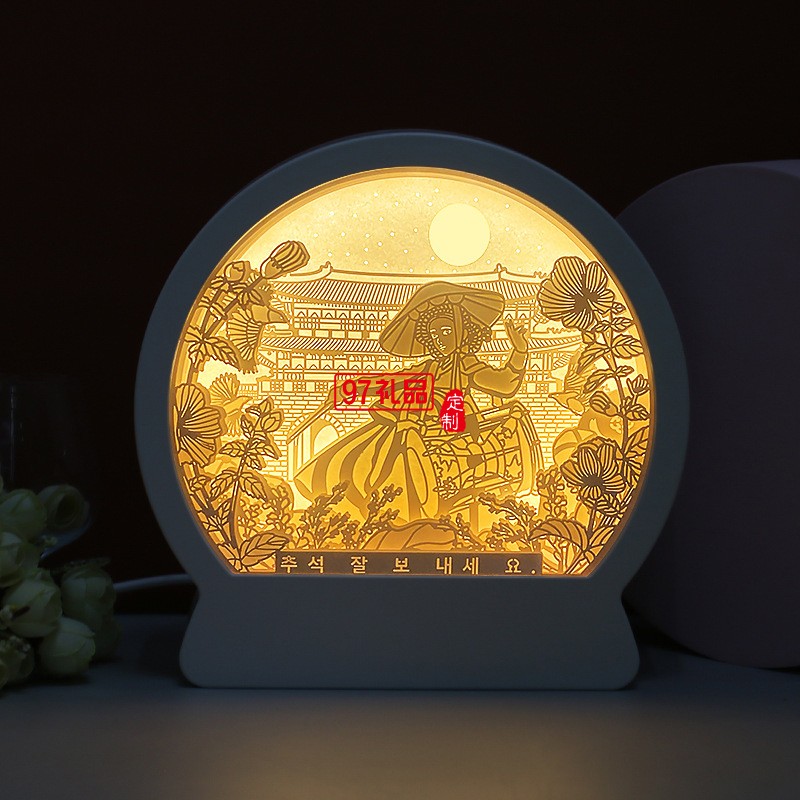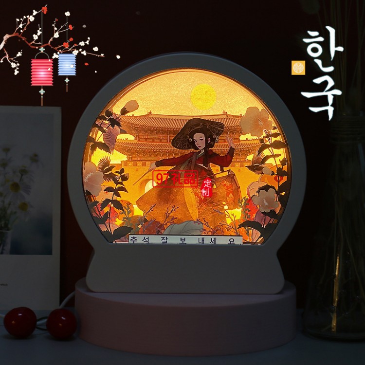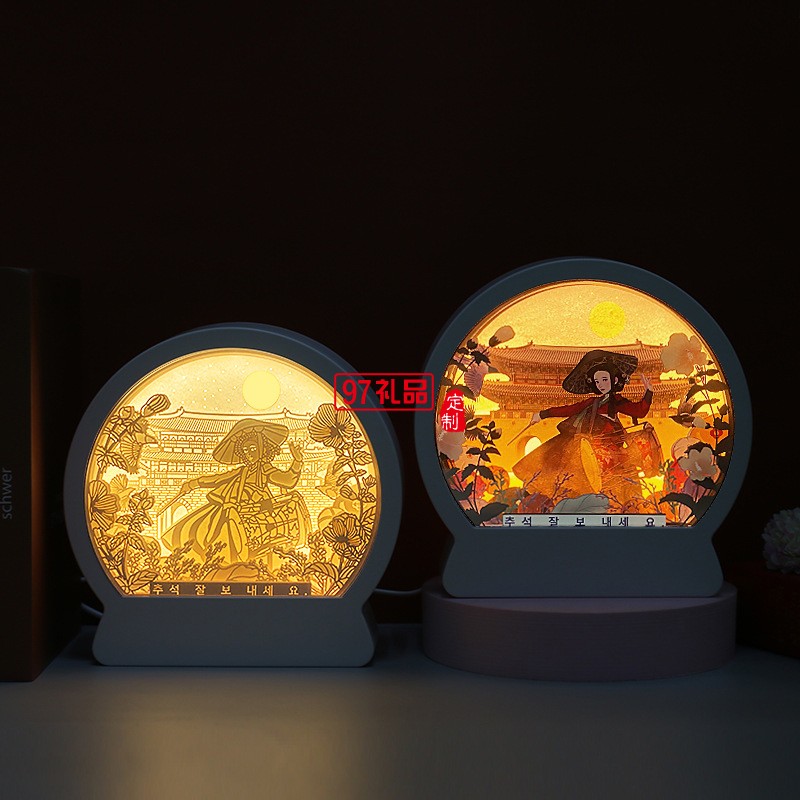 韓國(guó)中秋紙雕燈 韓式節(jié)日立體紙質(zhì)工藝禮品 臥室床頭小夜燈定制