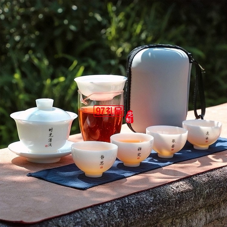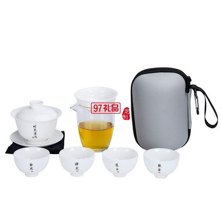 白瓷旅行茶具簡約套裝一壺四杯戶外蓋碗便攜式羊脂玉快客杯