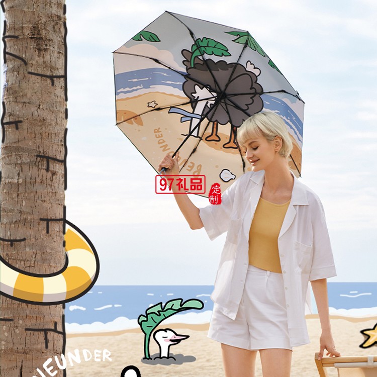 國(guó)潮鴕馬斯太陽(yáng)傘女小巧雙層黑膠隔熱防曬晴雨兩用傘定制公司廣告禮品
