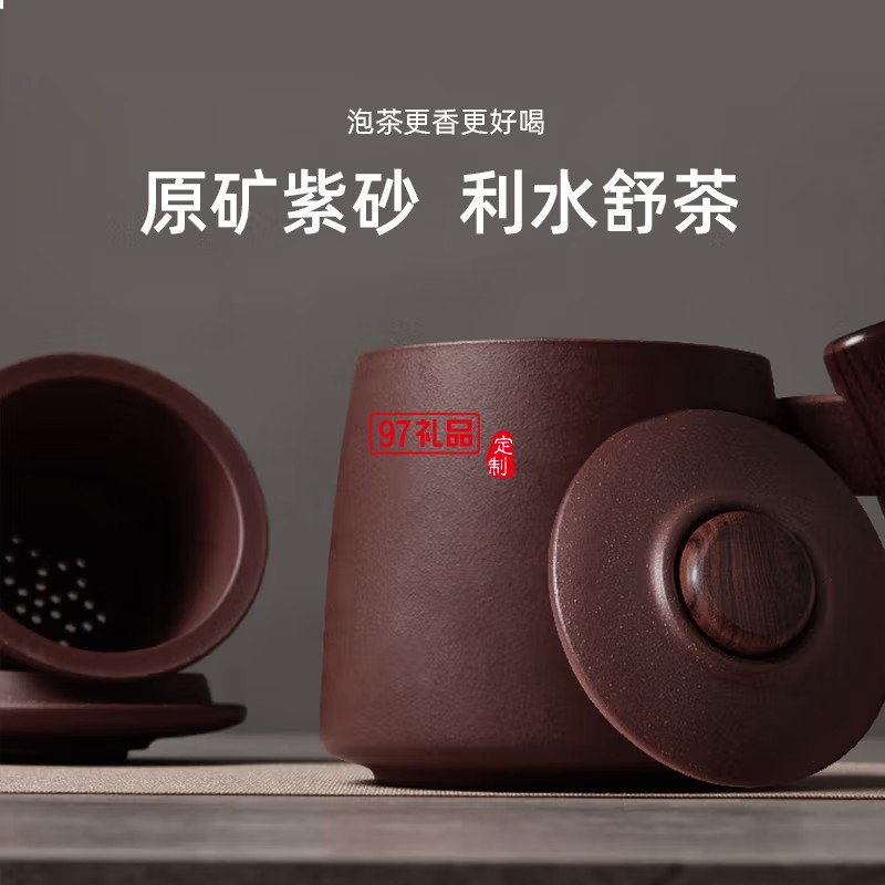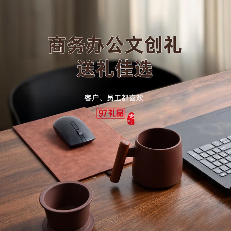 清樸堂 知行紫砂杯摜蛋商務(wù)套裝原礦紫砂杯紅木把商務(wù)辦公文創(chuàng)禮品禮盒 【