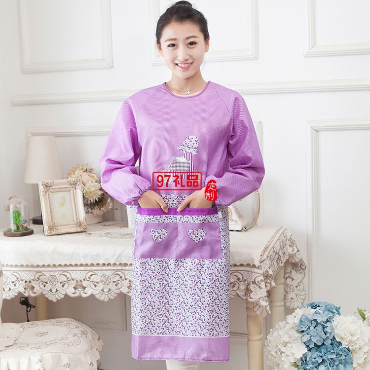 成人護衣罩衣廚房長袖圍裙大人反穿衣防水防油工作服定制公司廣告禮品