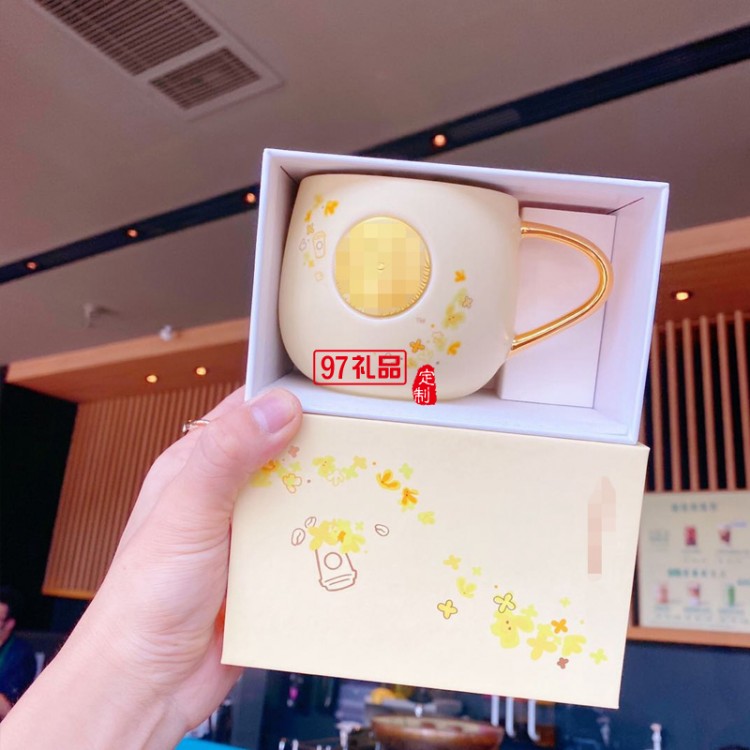 中秋玉兔金桂銅章印花馬克杯咖啡杯銅牌水杯