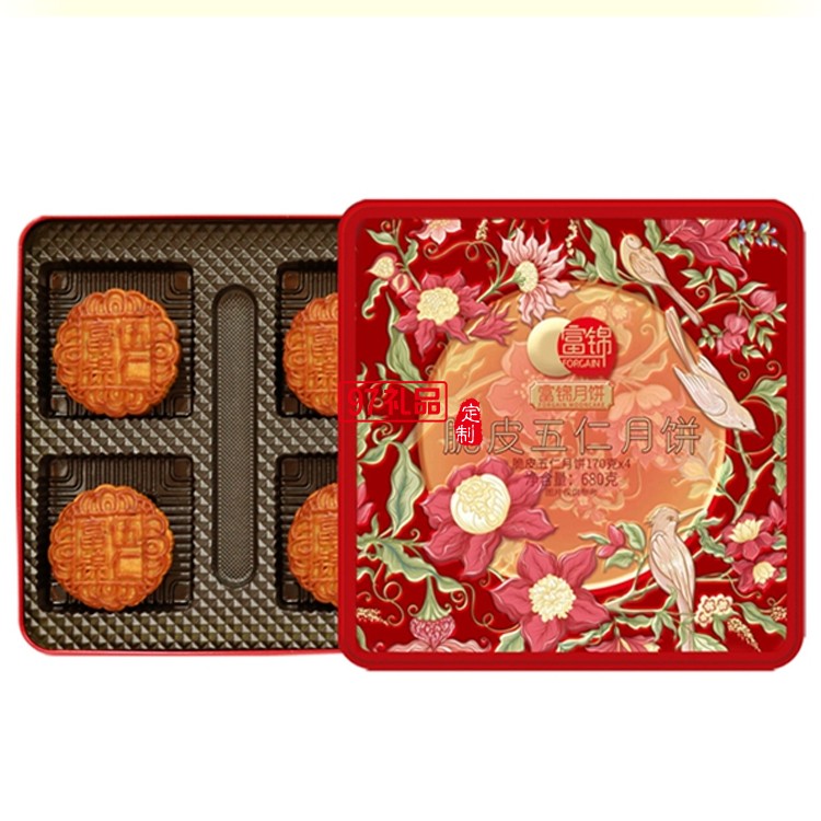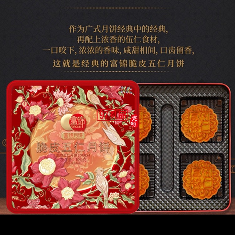 脆皮伍仁廣東富錦老廣式月餅團(tuán)購(gòu)福利送禮高端鐵盒
