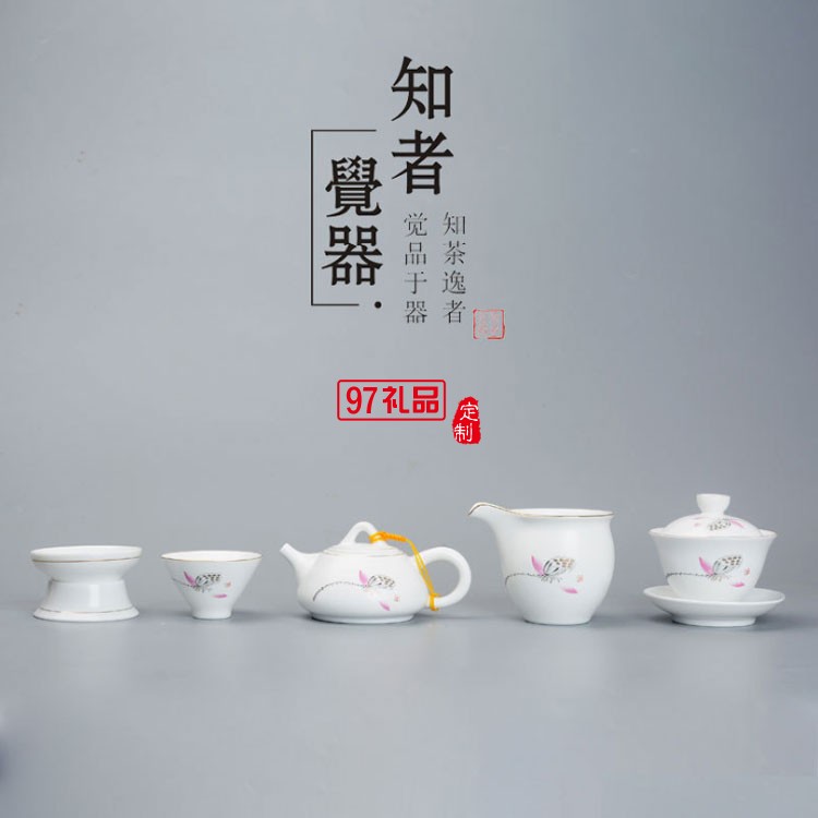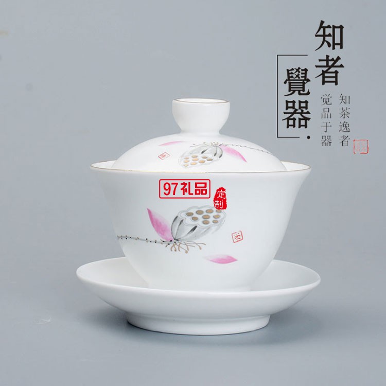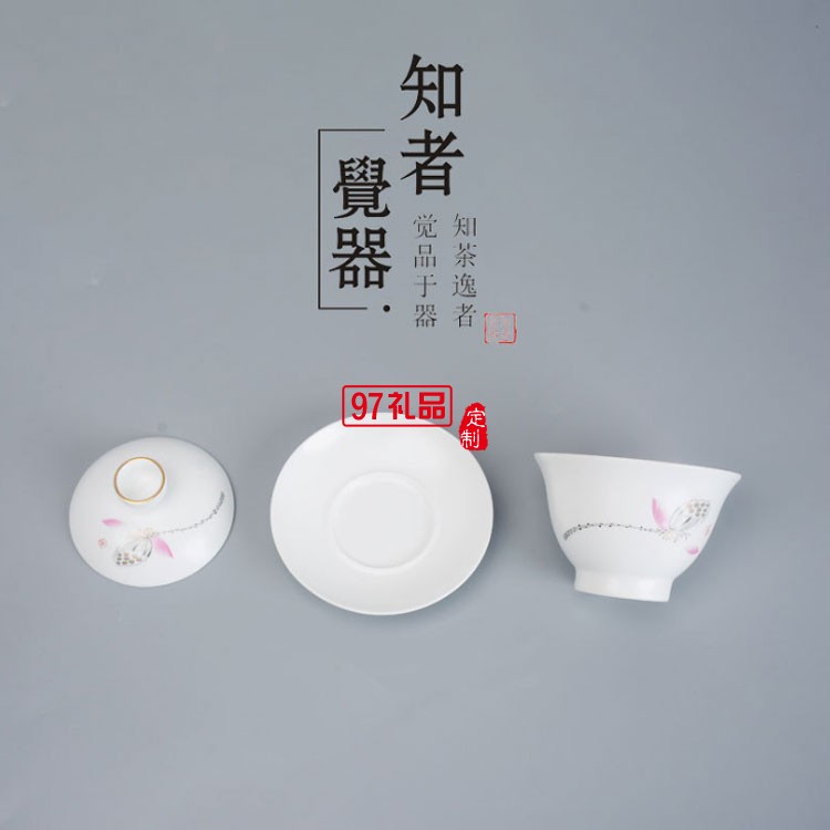 荷香茶具套轉斗笠蓋碗 商務送禮可定制LOGO