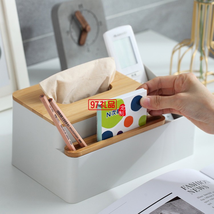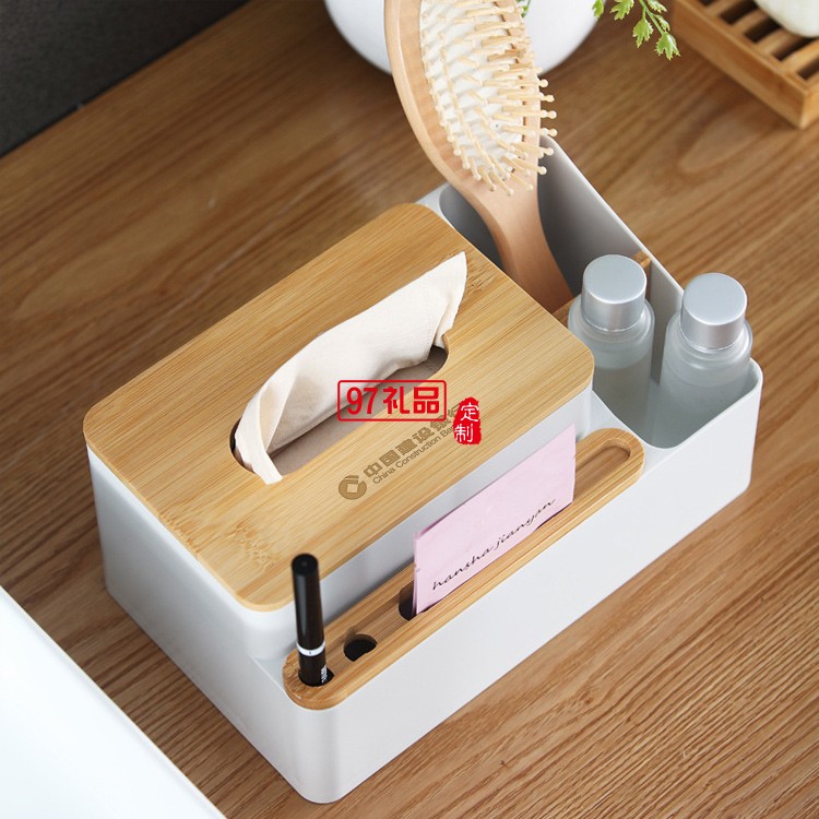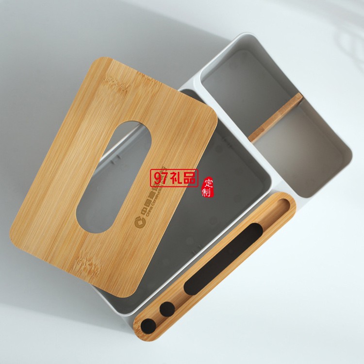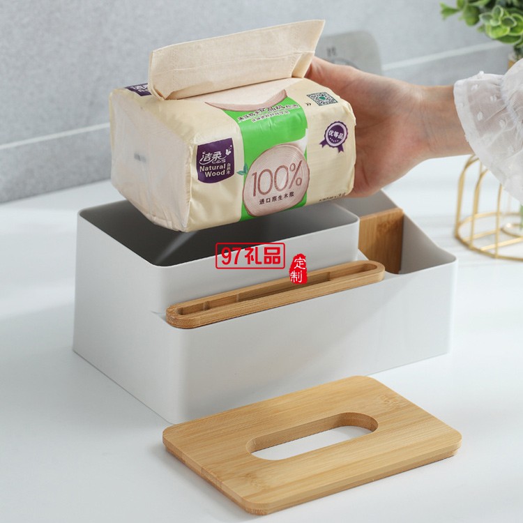 竹蓋多功能簡約桌面紙巾盒