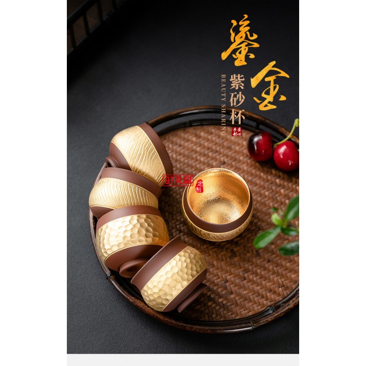 紫砂喝茶杯鎏24K金專用主人杯品茗杯功夫茶單杯茶碗高檔商務(wù)禮品定制