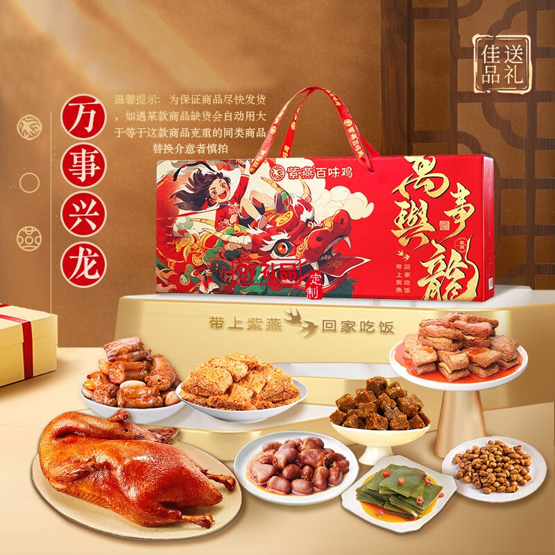 紫燕百味雞鹵味熟食即中秋禮盒高端烤鴨心海帶花生牛肉粒萬事興龍880g