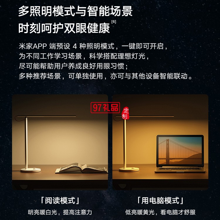 米家LED智能臺(tái)燈1S 臥室家用學(xué)生書桌折疊簡(jiǎn)約床頭燈定制公司廣告禮品