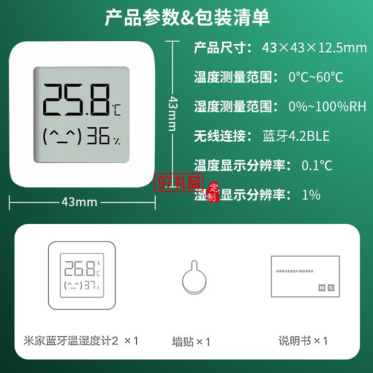 米家藍(lán)牙電子溫濕度計(jì)2嬰兒房室內(nèi)溫度表器壁掛式定制公司廣告禮品