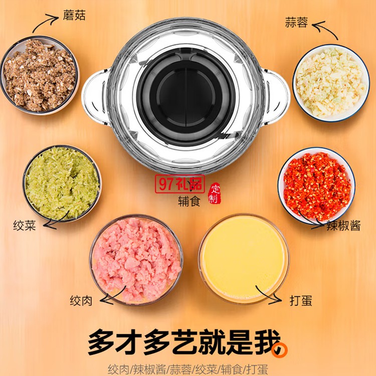 九陽絞肉機電動多功能不銹鋼小型碎肉料理機定制公司廣告禮品