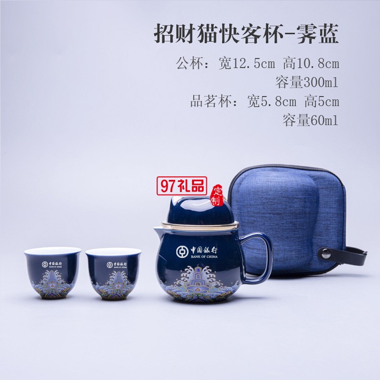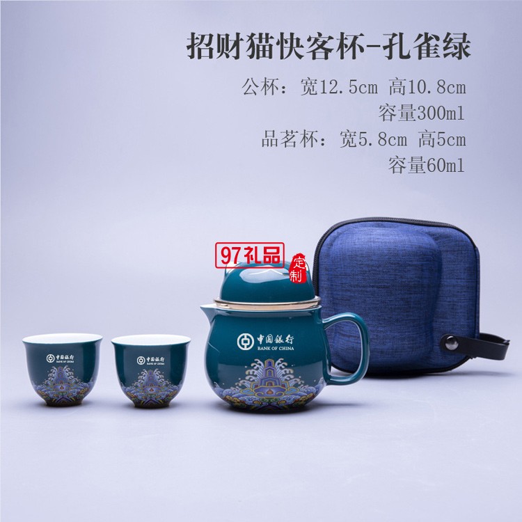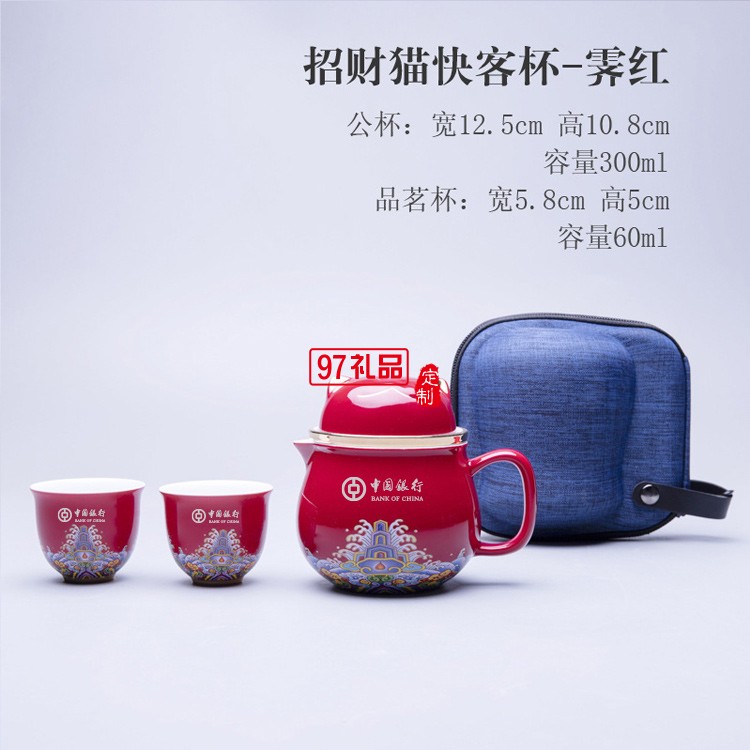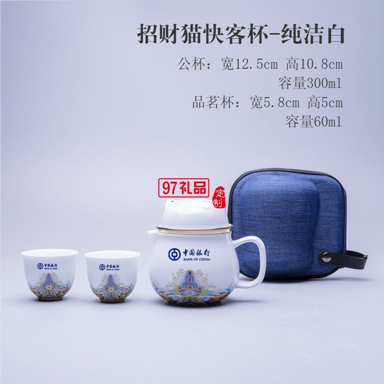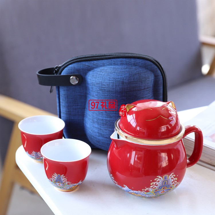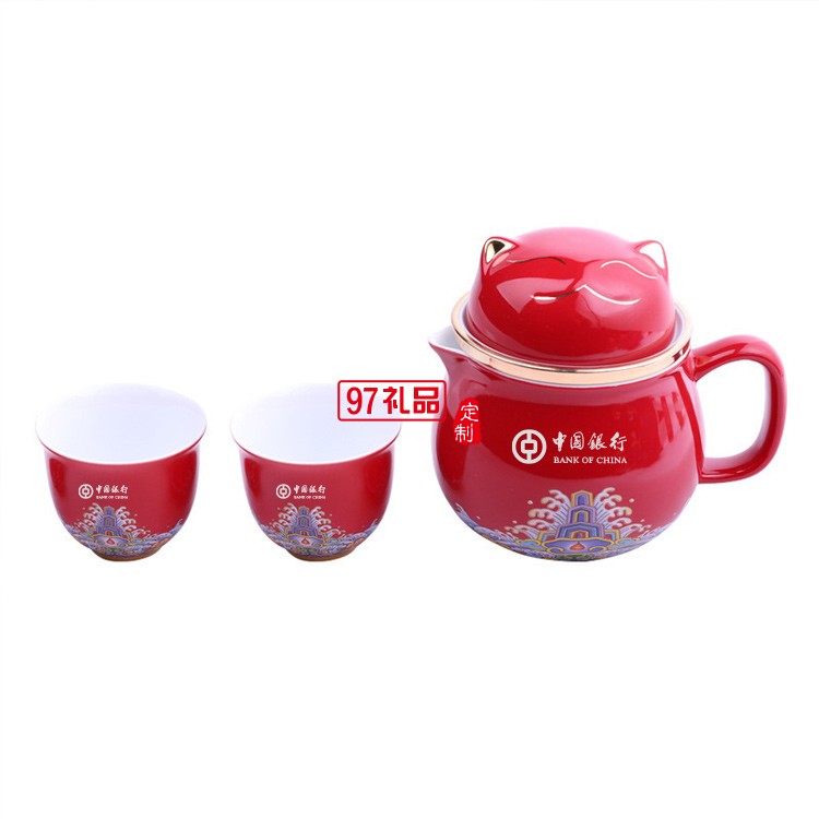 陶瓷辦公杯招財貓快客杯一壺兩杯旅行便攜茶具茶水分離