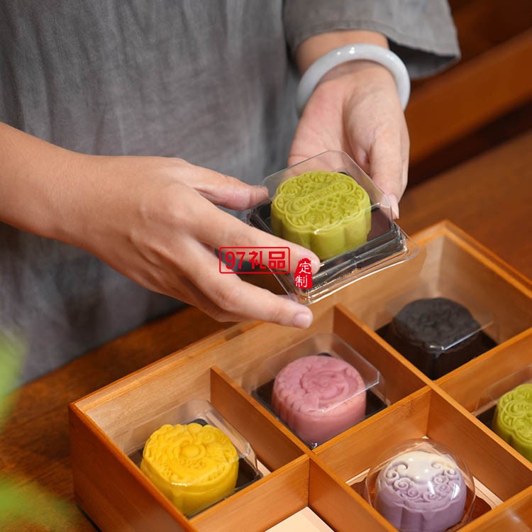 茉莉青提流心×2,  桂花烏龍流心×2,  抹茶青蘋果流心×2 ,紅茶金沙奶黃流心×2, 洛神花蜜果流心×1, 竹制茶點(diǎn)盤×1,  隔板×4,   手提袋×1