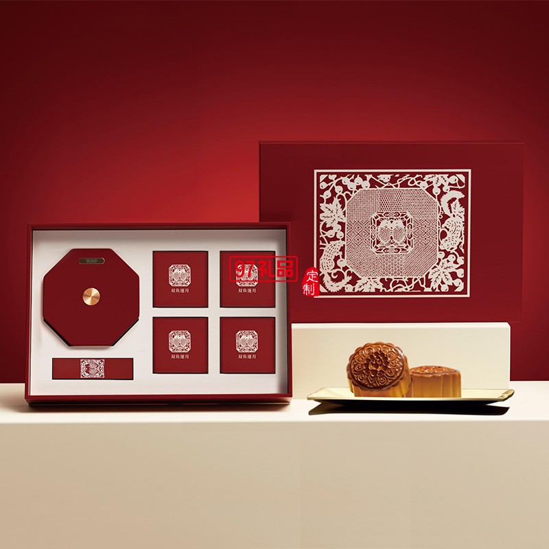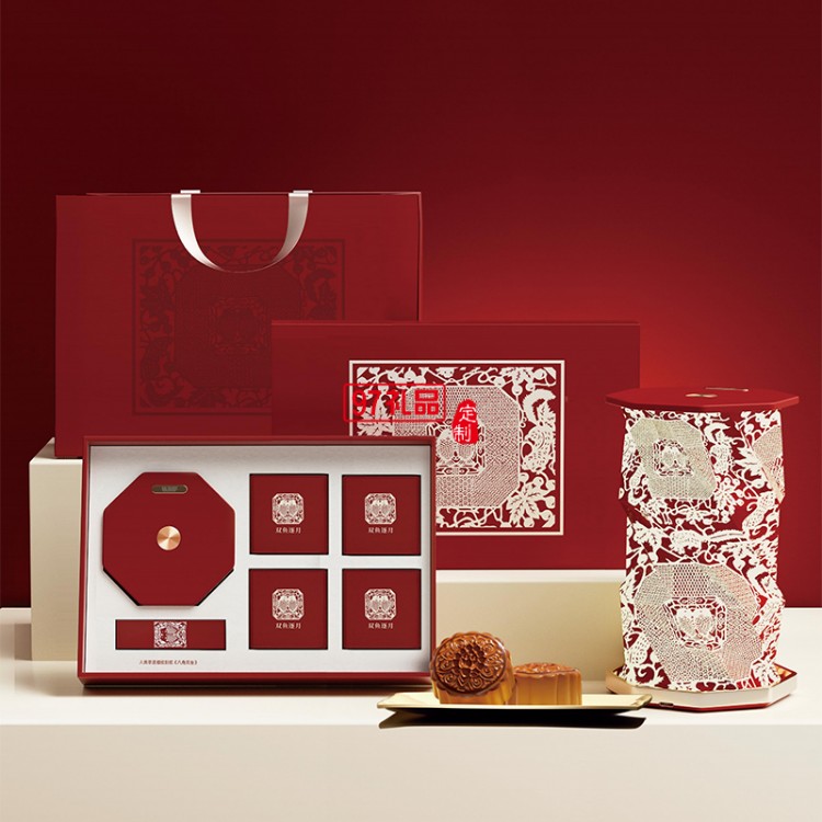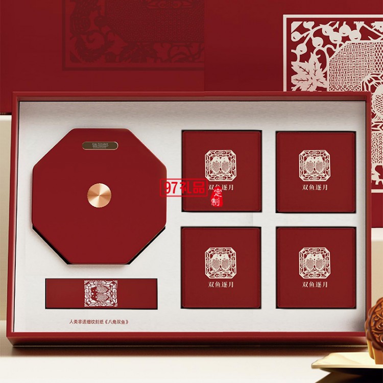 雙魚逐月細(xì)紋刻紙八角雙魚旋轉(zhuǎn)燈中秋月餅禮盒