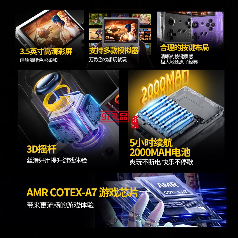 單搖桿3.5寸2.5D IPS 320*480      2000毫安 支持10大模擬器   內(nèi)存64G/128G